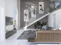 Hay 4 pisos en la planta baja. Los pisos del medio tienen entreplantas. En la primera planta de los entresuelos hay una cocina americana, un salón y un dormitorio. En la entreplanta hay un dormitorio, un cuarto de baño y un aseo. Las segundas plantas están diseñadas como áticos dúplex y repiten de nuevo el esquema de salón con cocina americana y zonas de terraza. Los pisos disponen de elementos que aumentan la comodidad, como sistemas centrales de satélite, sistemas centrales de Internet e infraestructuras de aire acondicionado.