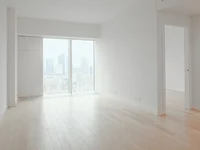 This apartment is located at 25th floor of the tallest in European Union building. Total surface of 62,50 m2 is composed of a bedroom, living room combined with a dining area and kitchen and a bathroom. The air in the apartments is filtered by a special heating, ventilation and air conditioning system. It is equipped in Home Management System allowing the control of functions such as lighting, temperature, air conditioning and roller shutters.