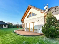 La casa fue construida según un proyecto individual con énfasis en combinar apariencia y prestigio con funcionalidad y comodidad de uso cotidiano. La inspiración de las villas italianas se manifiesta a través de la disposición de habitaciones con reuniones familiares y amigos en mente, y el techo alto y amplio salón es una especie de invitación de la entrada. El acristalamiento grande hace que el jardín sea una extensión natural de la casa, y el interior es brillante independientemente de la temporada. Gracias al uso de materiales de alta calidad (incluido piedra, mármol, travertino), el acercamiento pedántico de los propietarios, así como el diseño atemporal, la casa es más impresionante que nuevos bienes raíces.