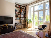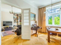 Inmediatamente en la entrada del apartamento hay un vestidor y un baño con un aseo y una ventana grande, luego un aseo separado. Luego vamos a dos grandes dormitorios situados en el lado de un jardín tranquilo y verde. Al convertir el comedor en un dormitorio, usted puede tener 3 dormitorios independientes.