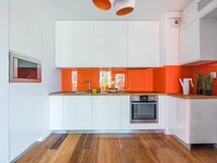 El apartamento está terminado y listo para entrar. Los pisos están hechos de tablas de bambú (que son mucho más durables que los suelos tradicionales) y gres. Todos los muebles hechos a medida, cocina en el sistema Blum, aire acondicionado. En el pasillo hay un armario grande, la posibilidad de crear un vestidor. Windows orientado al suroeste, equipado con persianas de bambú.