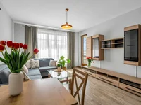 El nuevo propietario tendrá a su disposición un amplio salón con un cómodo sofá de esquina plegable, una elegante cocina con electrodomésticos incorporados, un acogedor dormitorio con cama doble, un baño con bañera y lavadora, así como un amplio salón que conecta todas las habitaciones.