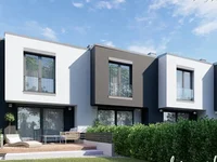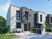 Cada unidad de la casa adosada consta de una sala de estar en la planta baja con una cocina luminosa en forma de anexo y un aseo. En el primer piso tenemos tres dormitorios y un baño. Hay calefacción por suelo radiante en toda la casa. La casa se entregará en estándar de desarrollador, es decir, para ser terminada y amueblada por dentro.