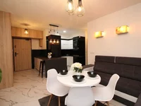 Un apartamento nuevo ubicado en el primer piso de un edificio recién terminado. El apartamento consta de una sala de estar con cocina, un dormitorio con una cama grande y un armario, una habitación adicional con un sofá y un baño. El apartamento también incluye un balcón. La cocina está totalmente equipada con electrodomésticos nuevos de alta calidad.El apartamento está completamente amueblado y equipado con todo lo necesario. El edificio ofrece a los residentes acceso a un patio verde, una recepción con vestíbulo, una terraza en la azotea con zona de relax y una zona de PlayStation. PRECIO