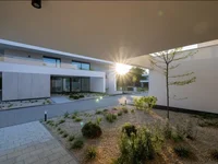 The facades are kept in light tones and covered with high-class materials, including more than 3 metres of quartz sinter panels. This is characterised not only by its durability and modern-class design, but also by its incredible resistance to all types of damage, scratches and discolouration. The pitch of the roofs has been covered with an attic.