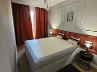 El apartamento está totalmente amueblado y equipado con electrodomésticos, incluyendo nevera, estufa, horno, lavavajillas y lavadora. Brillante, con renovación de diseño y un diseño funcional. Hay aire acondicionado, armarios empotrados y TV en el dormitorio. Las ventanas dan al patio, proporcionando paz y confort.