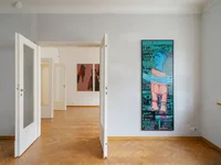 El apartamento está situado en la segunda planta de un edificio pre-guerra sin ascensor e incluye: un hall de entrada (8.4 m2), un salón (16.8 m2), una cocina con zona de comedor (24.2 m2), dos dormitorios (18.7 m2 y 16.6 m2), una oficina o un pequeño dormitorio (4.6 m2), un baño con bañera (4.3 m2), un aseo separado y un pasillo (6 m2).