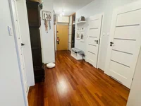 El apartamento consta de un amplio salón con cocina americana de unos 33 m2 con salida al balcón, dos dormitorios de unos 12 m2 y 13 m2, un amplio pasillo con armarios empotrados, un baño de unos 6 m2 y un aseo separado de unos 3 m2. El apartamento fue renovado el año pasado.