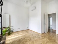 Apartamento de 3 habitaciones (18 m2, 17 m2 y 15 m2), cocina de 11 m2 (actualmente utilizado como estudio, equipado con aire acondicionado), baño y WC separado, ideal para su uso como oficina o estudio. Hay un pequeño balcón con vistas al patio. Los techos son altos, unos 3.63 m.