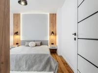 El apartamento está completamente reformado y equipado con muebles y electrodomésticos de alta calidad. Incluye una cocina moderna con electrodomésticos de alta calidad y TV, un dormitorio con cama doble y un amplio armario, un amplio salón. El apartamento tiene aire acondicionado, radiadores decorativos y iluminación LED moderna. Pisos de roble natural, calefacción por suelo radiante en el baño, drenaje desde el aire acondicionado, armarios empotrados hasta el techo para el máximo uso del espacio.
