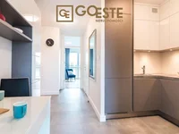 El interior del apartamento fue diseñado con cuidado para cada detalle, haciéndolo acogedor y cómodo. Los suelos están acabados con madera, que introduce un clima cálido y acogedor. La cocina es un espacio diseñado para la funcionalidad - muebles modernos en el edificio y electrodomésticos (lavadora, nevera, placa eléctrica) facilitan el uso diario. También hay una mesa en la cocina, que es el lugar perfecto para compartir una comida.