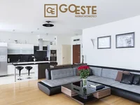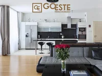 El ático fue terminado en un estilo elegante y moderno, utilizando los materiales de máxima calidad y equipado con electrodomésticos y RTV de fabricantes de renombre. La cocina, abierta a la sala de estar y comedor, está totalmente equipada con equipos modernos, haciéndolo funcional y cómodo. Mobiliario y accesorios han sido cuidadosamente seleccionados, lo que enfatiza el carácter exclusivo del apartamento.