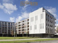 Los revestimientos de fachada aplicados de arenisca, con diversas texturas, granito pulido y paneles indican el prestigioso carácter de la inversión situada en el corazón de Powiśle. El alto nivel del edificio es enfatizado por los materiales utilizados y el uso de la carpintería de ventanas de madera.