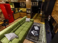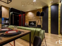 El apartamento estaba decorado en un estilo loft. El ladrillo crudo fue suavizado por madera natural y acentos coloridos y expresivos. El salón con la cocina es un todo coherente. Cada dormitorio tiene su propio balcón.