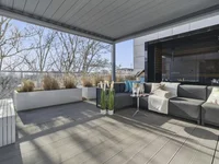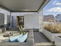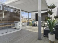 El diseño incluye un amplio salón con zona de cocina y comedor, un estudio independiente, una terraza de unos 60 m2 con saunas finlandesa, turca e infrarroja, un pasillo con armarios empotrados, un aseo, un lavadero, un dormitorio principal con baño con ducha y una salida al balcón, un segundo, tercer y cuarto dormitorio (uno de ellos también con salida al balcón), y un baño separado con bañera.