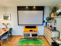 El apartamento cuenta con hermosos suelos de roble que añade calidez y elegancia. El salón está equipado con una pantalla de proyector montada en techo y una infraestructura de cine completo. Hay calefacción por suelo radiante en la cocina y el baño, y el apartamento tiene aire acondicionado. Todos los electrodomésticos están incluidos.