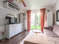 Equipamiento: salón con cocina americana, 2 habitaciones separadas, baño, pasillo, 2 jardines (30 m2 y 12 m2).