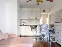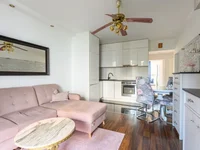 Acabado: paneles y baldosas, baño con bañera, cocina totalmente equipada (horno, vitrocerámica, campana, lavavajillas, nevera en los muebles).