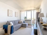 This apartment on the 9th floor of a renovated block impresses with its spaciousness and abundance of natural light flooding the interiors through south-east facing windows. Two well-proportioned rooms (16 m² and 9 m²) offer comfortable space for relaxation and work, while the bright kitchen (6 m²) serves as a practical utility area. The loggia (3 m²) is a true asset – evenings can be spent here relaxing while admiring the extensive panorama of Warsaw and the greenery of Bródno Park. The bathroom (3 m²) and entrance hall (4 m²) functionally complete this harmonious layout. The apartment also includes a basement room (3 m²).