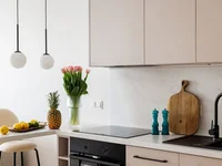 Bright living room with an open-plan kitchen, creating a spacious day zone.
