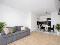 Venta apartamento moderno de 2 dormitorios con terraza privada, situado en la planta baja de un edificio de siete pisos con ascensor desde 2019 en Varsovia Wola.