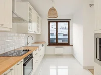 Moderno apartamento de dos dormitorios en el Mokotów de Varsovia situado en la cuarta planta de un edificio de seis pisos con ascensor desde 2012 en la calle 9B Sikorskiego.