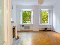 Este amplio apartamento, con una superficie de 74 m2, está situado en un encantador edificio pre-guerra de los años 1930. Cuenta con un luminoso salón con chimenea, un acogedor dormitorio, una cocina independiente con ventana, un baño y una sala ovalada única. La exposición dual (este-oeste) garantiza la luz natural durante todo el día, y la altura del techo de 2,95 m mejora la sensación de amplitud.