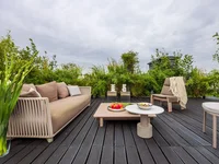 Espectacular terraza en la azotea con una superficie de más de 160 m2 (con acceso a través de una escalera de vidrio).