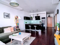 El apartamento está situado en la segunda planta de un edificio de cuatro pisos con ascensor, construido en 2008. El complejo está cerrado, vigilado y vigilado, asegurando un alto nivel de seguridad. El apartamento fue refrescado en 2025, permitiendo el traslado inmediato. Los residentes pueden disfrutar de un patio verde, ideal para relajarse después del trabajo.