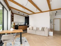 Este apartamento está muy iluminado gracias a las ventanas orientadas a tres direcciones. El interior ha sido diseñado con atención al detalle, y los materiales utilizados, como suelos de roble y microcemento, destacan el estilo moderno. Esta es una opción ideal para aquellos que valoran la comodidad y la estética.