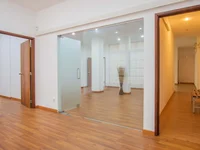 La planta baja consta de 3 amplias habitaciones climatizadas con suelos de parquet, una oficina en la entrada e instalaciones sanitarias en la parte posterior. El gran sótano tiene acceso al exterior a través de una puerta doble que es muy práctica para la carga / descarga.