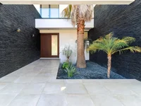 Tiene una entrada imponente a la zona social, con un salón y comedor y cocina equipada con una isla de planta abierta, muy espaciosa, con luz natural gracias a las ventanas de vidrio que se extienden de suelo a techo, ofreciendo así una vista panorámica sobre el mar y el jardín tropical, eliminando cualquier barrera entre el interior y el exterior. Esta perfecta fusión entre los espacios permite una experiencia continua, donde la enorme terraza, la piscina y el jacuzzi se convierten en una extensión natural de la zona interior de la casa.