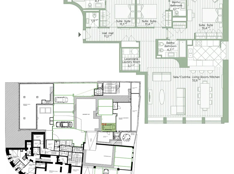 Apartamento de 2 dormitorios (T1+T0), con 108 m2 de superficie privada y balcón en el edific…