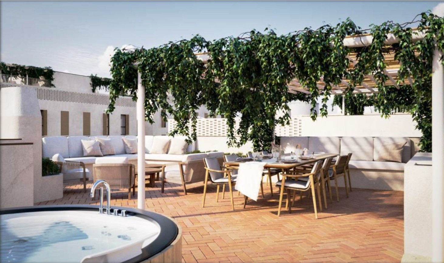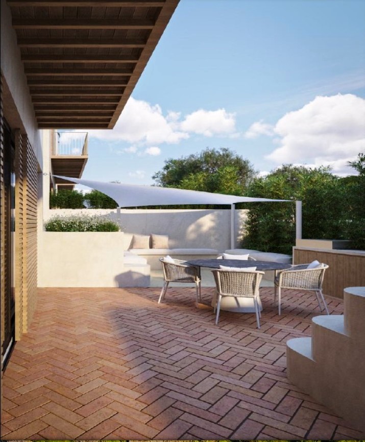 Los apartamentos T2 y T3 tienen grandes terrazas y balcones que conectan el interior con el exterior a través de grandes aberturas acristaladas. Cada apartamento tiene su propia piscina.