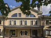 Mansión de tres pisos con una planta baja en la calle Big Tatarskaya en la zona de Zamoskvorechye. Mansión residencial construida en 2001.