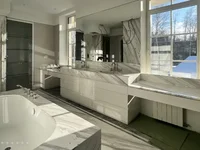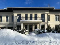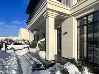 A suburban mansion with an area of 1000 m ² It is located on a section of the correct shape of 40 acres next to forest. The light facade of the building is lined with Dagestan stone and sandstone.