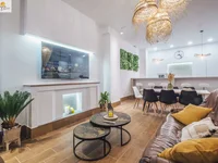 Objeto comercial en venta. El edificio fue construido en 1996 con renovación moderna, superficie total 320 metros cuadrados. Consta de 4 plantas y dos terrazas. Incluye 9 apartamentos separados, tres de los cuales tienen un baño común y seis apartamentos con baños individuales y una zona común equipada con lavaderos. Terrazas con tumbonas equipadas para un cómodo descanso.El concepto del proyecto se organiza en el marco del Centro Coving. (vivir y trabajar). En el sitio instalado sistema de electricidad en los paneles solares 12,5 kW. También instalado CCTV y cerraduras inteligentes en cada habitación individual. La videovigilancia y las cerraduras inteligentes se supervisan y controlan a través de una aplicación en el teléfono o el ordenador. A través de la aplicación se pueden ver las grabaciones, así como vídeo en directo de las zonas comunes con terrazas y entradas del edificio. Es posible cambiar los códigos de las cerraduras y desconectar completamente la electricidad en cada habitación individual (sistema anti-carcass). En todas las plantas del edificio hay Internet de alta velocidad con carga distribuida uniformemente. Los apartamentos están equipados con: camas, mesillas de noche, armarios, escritorios con sillas, aire acondicionado individual, televisores con aplicación android tv, iluminación Led y retroiluminación. Las puertas están equipadas con modernas cerraduras con acceso mediante tarjeta, contraseña, huella dactilar y llave mecánica. El sistema de electricidad se basa en el sistema del hotel, si se quita la tarjeta, se desconecta toda la electricidad de la habitación, incluido el aire acondicionado. En la planta baja hay una zona común con lavaderos y un cuarto de baño. En la zona común se encuentra la cocina, que incluye: dos frigoríficos empotrados, dos placas de inducción, horno, microondas, lavavajillas, campana extractora y muchos armarios prácticos. Encimeras de piedra y una barra de desayuno. También la zona común está equipada con áreas para el trabajo y la relajación. Renovación, todos los equipos, electrodomésticos son completamente nuevos, sin uso, en garantía. ¡Oferta única en el mercado!