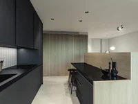 En los apartamentos, el espacio y la luz natural son los protagonistas. Todo ha sido diseñado para que la zona de descanso sea un lugar íntimo donde desconectar y relajarse. En los baños, las paredes están revestidas con baldosas de gres cerámico de gran formato, y disponen de plato de ducha prefabricado de resina, grifería monomando negra (encastrada sobre encimera en baño principal y empotrada en baño secundario), inodoros suspendidos blancos con cisterna empotrada, así como un mueble de pared. Las cocinas son modernas y muy funcionales, de líneas rectas y materiales duraderos, con encimera de cuarzo compacto y grifería monomando de baja presión para reducir el consumo de agua, se entregarán totalmente equipadas con campana extractora de obra, horno eléctrico, microondas, vitrocerámica de inducción, lavadora, lavavajillas y frigorífico.