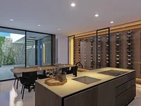 Accederás a la casa desde el callejón sin salida de la calle, caminando por un agrada-ble sendero, dándote la oportunidad de descubrir las diferentes características de este proyecto. Desde la entrada principal se accede a la planta baja directamente al recibi-dor, distribuyendo la cocina, salón-comedor todo en un mismo espacio. Desde el reci-bidor se puede acceder a la planta alta y baja a través de las escaleras o el ascensor. El salón y la cocina tienen acceso directo a la piscina y zona de ocio exterior con BBQ. El nivel superior está dedicado al área de dormir y consta de dos dormitorios princi-pales con vestidor, baño completamente equipado con vistas increíbles.