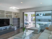 La zona exterior tiene terrazas cubiertas y descubiertas, una piscina con agua salada climatizada y una zona de barbacoa con cocina exterior. Hay aparcamiento para dos coches.