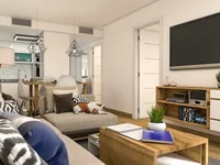 En la fase 1, encontramos un conjunto de 8 bungalós adosados, distribuidos en dos plantas. El acceso a las viviendas se realizará a través de dos escaleras exteriores, que darán acceso a las terrazas de las viviendas. Las terrazas de los departamentos estarán separadas de las escaleras por cerramientos de aluminio y vidrio para brindar privacidad.