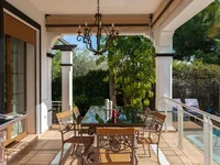 Dispone de zona ajardinada alrededor de la piscina, y varias terrazas alrededor de la casa. Las terrazas tienen preciosas vistas al mar y a la montaña.
