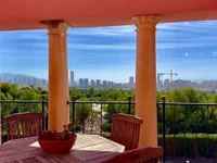 GRAN VILLA MEDITERRANEA EN GOLF BAHIA FINESTRAT CON VISTAS "Disfrute del lujo y la comodidad en esta espectacular casa de 320m2, ubicada en la prestigiosa zona de Golf Bahía de Finestrat. Situada en un terreno de 720m2, esta impresionante residencia de dos plantas ofrece una combinación perfecta de elegancia y funcionalidad.En la planta baja, encontrará un amplio salón comedor con acceso directo al jardín, creando un ambiente luminoso y acogedor para disfrutar con familiares y amigos. La cocina independiente, también con acceso al jardín trasero, cuenta con modernos electrodomésticos y ofrece un espacio ideal para la preparación de deliciosas comidas. Además, en esta planta se encuentra un cuarto de lavado, un baño con ducha y acceso al garaje para dos coches.Al subir por la preciosa escalera a la segunda planta, se encuentran los cuatro dormitorios, cada uno con su propio baño en suite, ofreciendo privacidad y comodidad para todos los residentes. Varias terrazas con vistas al mar y a la montaña completan esta planta, proporcionando espacios para relajarse y disfrutar de las impresionantes vistas que ofrece el entorno.La casa también cuenta con un gran sótano, ideal para usar como bodega, despensa o trastero, proporcionando espacio adicional para almacenamiento. El jardín, con una gran piscina, ofrece un lugar perfecto para disfrutar del clima mediterráneo y organizar reuniones al aire libre.Además, la propiedad está equipada con aire acondicionado para garantizar el confort durante todo el año. Se vende completamente amueblada y con electrodomésticos, lista para que pueda disfrutar de ella desde el primer día.Con su ubicación privilegiada en la zona de Golf Bahía de Finestrat, esta casa es una oportunidad única para aquellos que buscan un hogar de lujo en un entorno exclusivo y tranquilo."