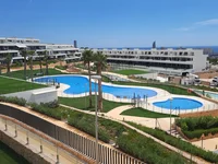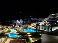 El complejo cuenta con un hermoso jardín, una gran piscina al aire libre bellamente diseñada con piscina infantil separada, una piscina al aire libre un poco más pequeña, una gran piscina cubierta, sauna, sala de fitness, pista de pádel y parque infantil. El complejo dispone de los ascensores necesarios y está adaptado para sillas de ruedas. Todas las instalaciones son gratuitas. El complejo está cerrado al acceso de personas no autorizadas y hay un conserje. El apartamento en sí está en el segundo piso (accesible por ascensor). Dispone de una lujosa cocina abierta con barra americana, gran frigorífico con congelador independiente, placa de inducción, lavavajillas, lavadora, horno, microondas, cafetera, batidora, tostadora, tendedero, plancha y tabla de planchar, etc. El acogedor salón está amueblado con una mesa de comedor redonda con 4 sillas, un sofá con otomana, 2 mesas de centro redondas y un mueble para la televisión con andamios de madera. Hay dos habitaciones. 1 con cama de matrimonio, 1 con dos camas individuales que, por supuesto, se pueden juntar o separar. Ambos dormitorios disponen de armario empotrado y baño privado con amplia ducha a ras de suelo y aseo. El balcón de 43,5 m2 está orientado al sur y tiene una vista fantástica del mar y de Benidorm. En el balcón hay 2 tumbonas con mesa auxiliar, una mesa con 4 sillas regulables y una sombrilla. El apartamento dispone de calefacción por suelo radiante y aire acondicionado y hay persianas eléctricas delante de las ventanas. Se ha reservado una plaza de aparcamiento debajo del edificio, el trastero se encuentra justo detrás de la plaza de aparcamiento.