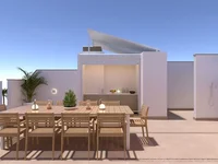 El interior cuenta con persianas eléctricas, muebles de baño, mamparas de ducha y zona de cocina americana o barbacoa exterior en el solárium.