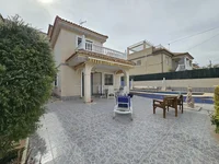 Esta villa en dos niveles se encuentra en una amplia parcela con una piscina privada, aparcamiento y unidad, con vistas al mar Mediterráneo desde un solárium privado y soleado. Dentro hay un enorme salón y comedor con dos ventanas que proporcionan mucha luz natural. Hay una cocina independiente totalmente equipada con acceso al lavadero y un cobertizo muy cómodo situado en la parte posterior de la parcela. En la primera planta hay un dormitorio doble grande y un baño de invitados con ducha. Arriba hay dos dormitorios dobles de invitados (uno con acceso al solárium), un baño familiar y un enorme dormitorio principal, que también tiene acceso a un solárium con impresionantes vistas de la parcela, piscina y hacia el mar. Esta propiedad se vende totalmente amueblada como imagen, con una variedad de opciones adicionales incluyendo aire acondicionado, calefacción central y una nueva caldera.