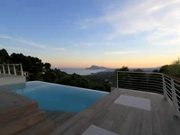 Sumérgete en el epitome del lujo mediterráneo en Villa Esmeralda, una obra maestra arquitectónica situada en la prestigiosa Sierra de Altea. Esta villa de nueva construcción abarca 360 m2 sobre cuatro plantas, ofreciendo impresionantes vistas del mar y las montañas desde cada ángulo.