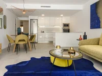 Moderno apartamento en Dehesa de Campoamor. La vivienda dentro cuenta con salón-comedor y cocina con barra americana equipada. También cuenta con 2 dormitorios y 2 baños (uno de ellos en suite) y una terraza de 12m2 .