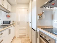 El apartamento dispone también de un aseo adicional para invitados, zona de lavado independiente y una cocina de concepto abierto, equipada con electrodomésticos de alta gama. El salón, amplio y acogedor, se abre a la terraza, creando un espacio ideal para relajarse o recibir visitas.