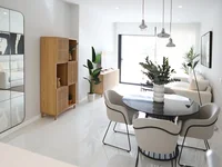 Los interiores de estos apartamentos están pensados para ofrecer el máximo confort y funcionalidad. Con opciones de dos y tres dormitorios, cada apartamento está equipado con dos baños modernos. Los suelos de gres porcelánico aportan un toque de elegancia y son fáciles de mantener. Las persianas eléctricas y el aire acondicionado aseguran un ambiente cómodo durante todo el año. Además, los electrodomésticos incluidos y los armarios empotrados añaden un nivel adicional de conveniencia y estilo, haciendo de estos apartamentos un lugar ideal para establecerse.